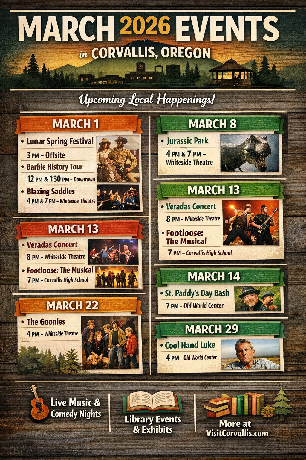 3:00 pm–6:00 pm | Lunar Spring Festival: 2026 Year of the Horse | Offsite Corvallis | https://corvallisbenton.librarycalendar.com/events/list (search Mar 1) |