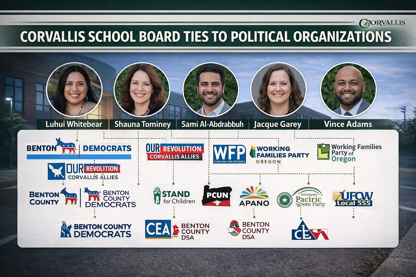 One board member, Sami Al-Abdrabbuh, also has an openly political history beyond school board service. Ballotpedia shows he ran for Oregon House District 16 as a Democrat in 2024 and previously ran in 2016 as a Progressive Party candidate.
