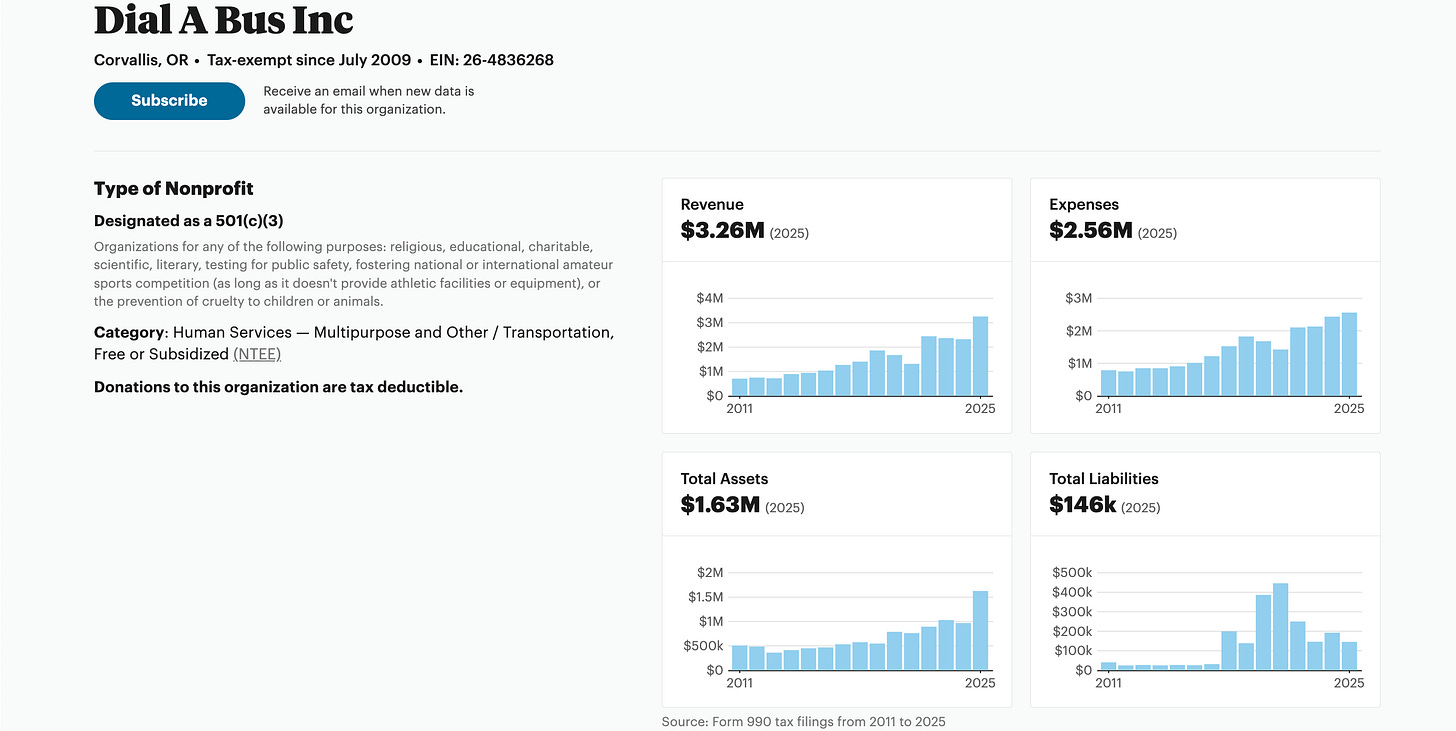You can find Dial-A-Bus tax filings here (if you love going to an IRS website during tax filing season). Together, these numbers raise a natural question: How much is the district paying, and is it aligned with long-term financial sustainability?