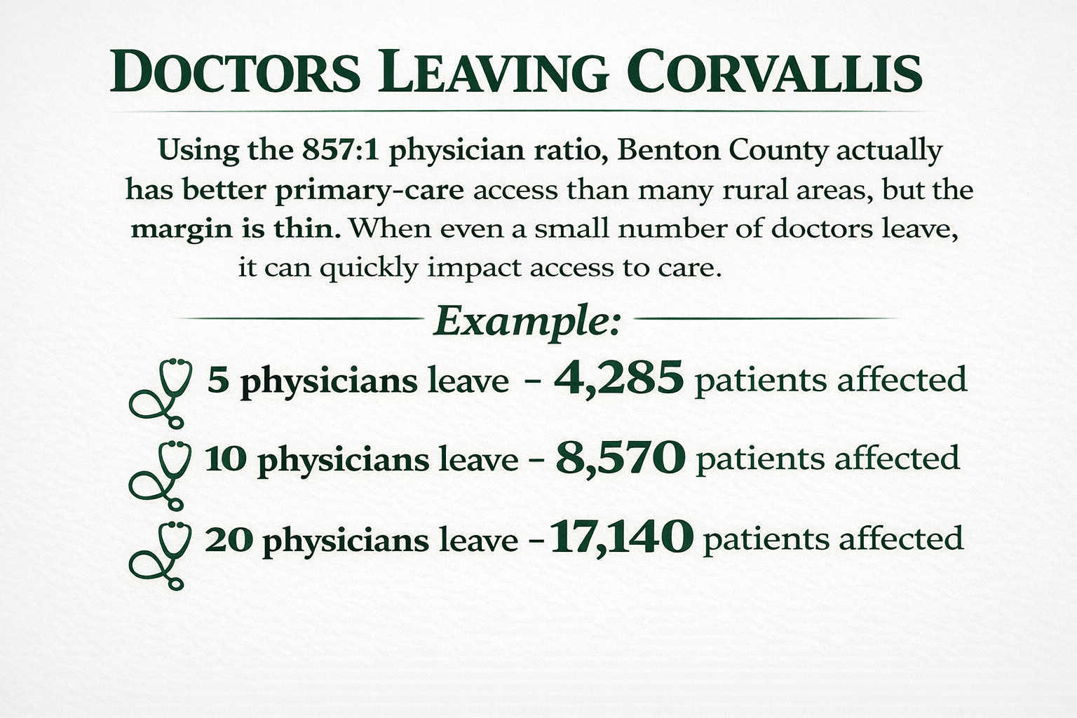 Whether the current wave of departures represents a temporary transition or a deeper structural change remains unclear. But for many patients in Corvallis, the immediate reality is simple: finding a doctor may be getting harder.
