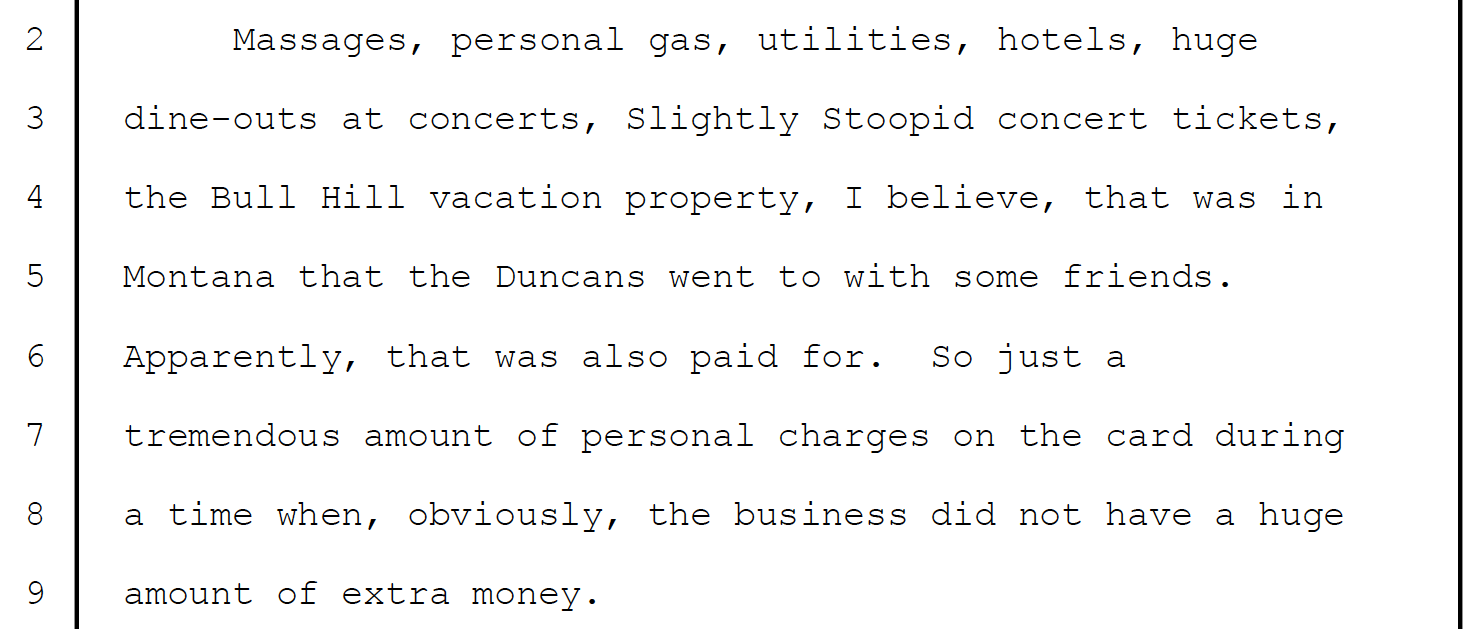 After hiring a forensic accountant, Dave found out where the money was really going. Some of these expenses reportedly included trips to Hawaii, Grateful Dead concerts, and donuts for their kids’ fundraisers (which were then sold back to Flat Tail). Not only was money being stolen, but it was also being used to build up a positive reputation in the community. Think about that.