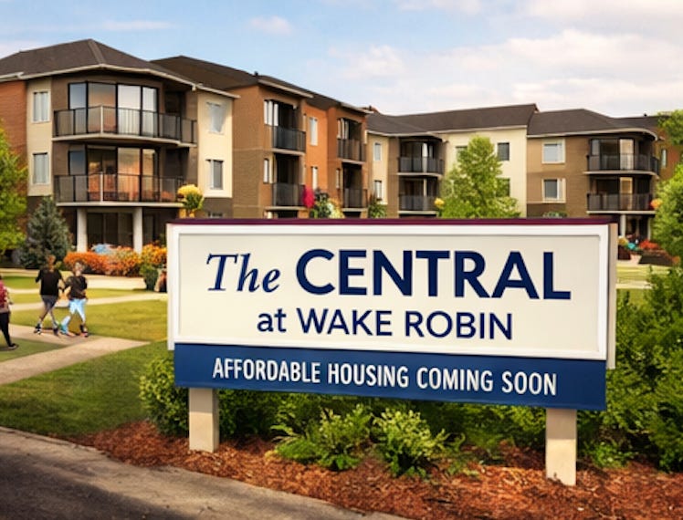 The proposed complex, The Central at Wake Robin, would be developed on approximately 5.9 acres of former industrial land, which is slated for demolition ahead of the new construction. The $57.3 million project includes five three-story buildings with a mix of one-, two-, and three-bedroom apartments.