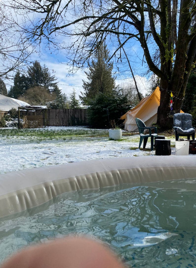 Yeah, you read that right. You can charge your phone. It’s not down by the river, but it does have a hot tub. So use your imagination. Really, really appreciate the photo with snow on the ground. Ladies and gentlemen, we are not in Bend anymore. We see your knee!